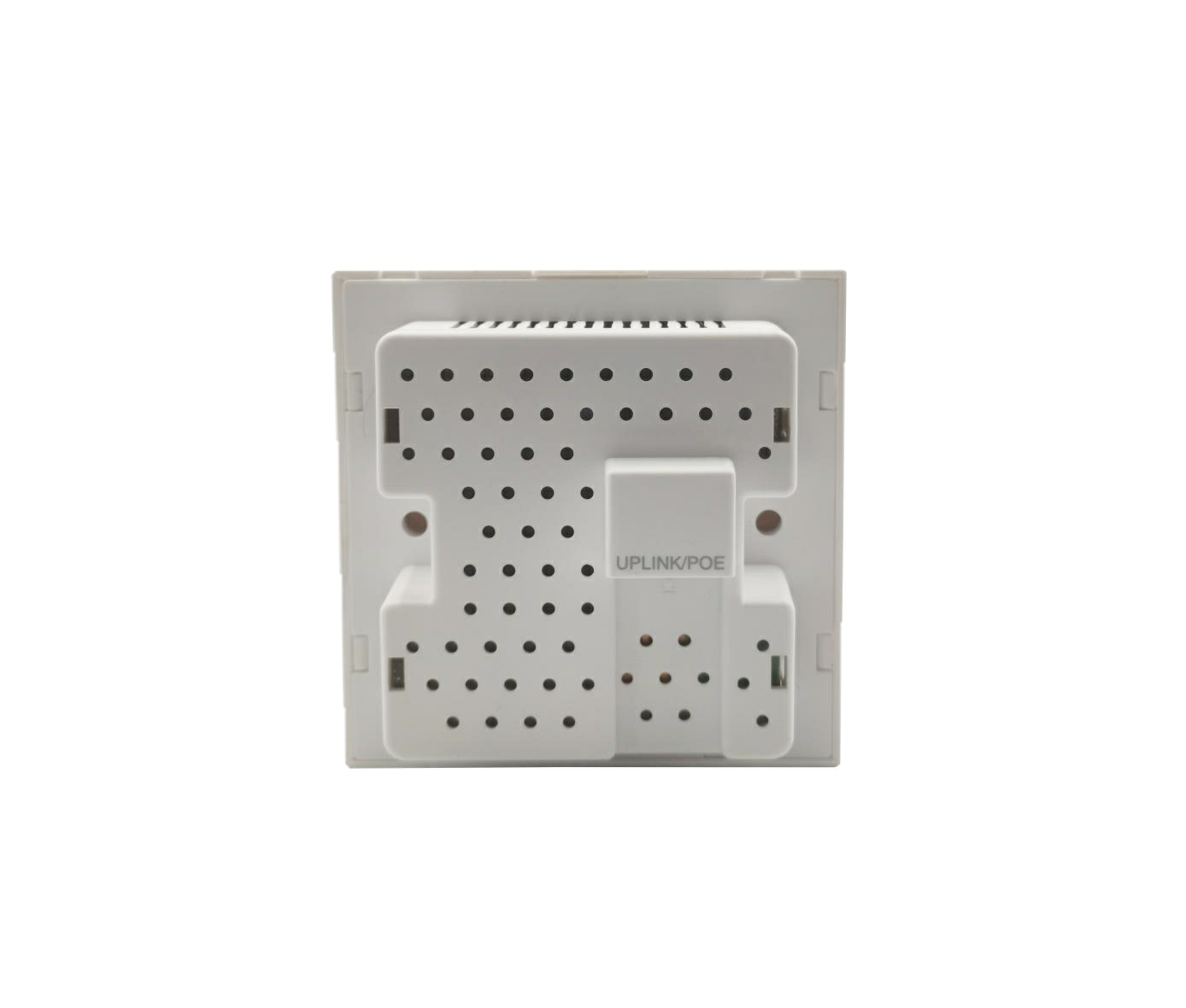 WiFi 6室内双频墙面AP,内置天线,双频四流,最大带宽1.775Gbps;背面1个10/100/1000Mbps上联接口,底部1个10/100/1000Mbps下联接口,支持802.3af/at PoE远程供电。(PoE供电模块需要单独选购) |