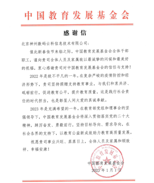 近期,evo视讯真人官网艾弗森贝博ballbet官网收到中国教育开展基金会的感谢信,以感谢evo视讯真人官网艾弗森贝博ballbet官网2022年在职业教育领域的贡献和实践,尤其是在全国职业院校大赛(中高职组)中对大赛顺利召开所付出的努力。